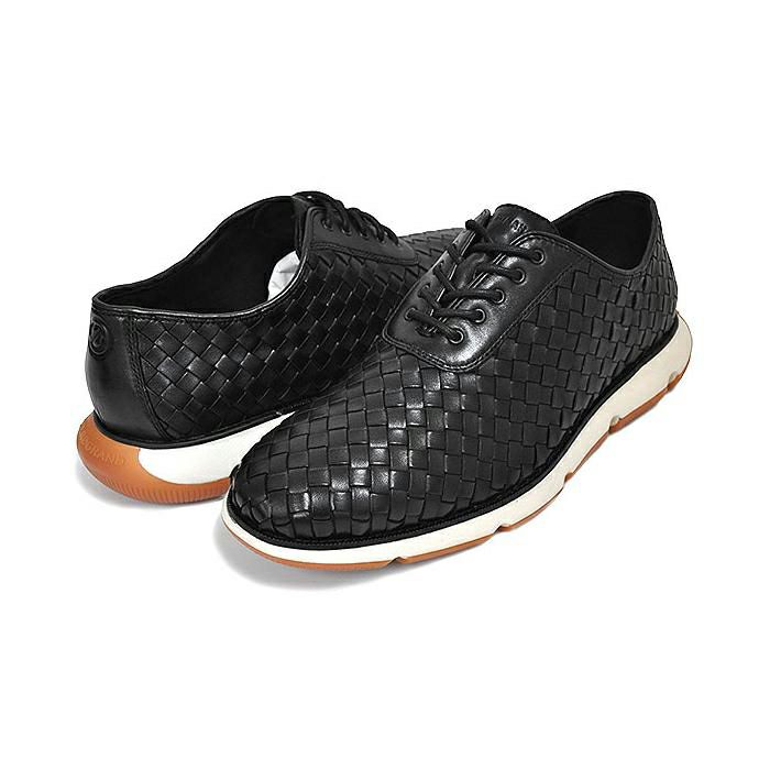 コールハーン 4.ゼログランド ウーブン オックスフォード ウーブン ブラック 革靴 レザー