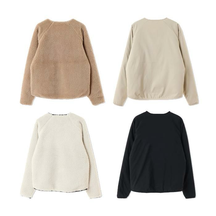 ボアフリース×ストレッチポリエステルの異素材を組み合わせたリバーシブル仕様のジャケット。