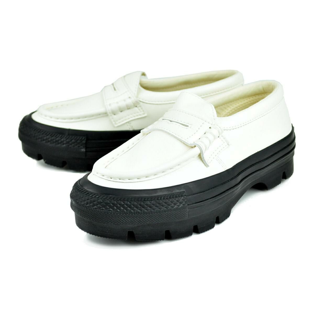 デザインアレンジモデルである今作は、ローファーデザインにリファインし、オールスターの厚底ソールを備えたNEWモデル。