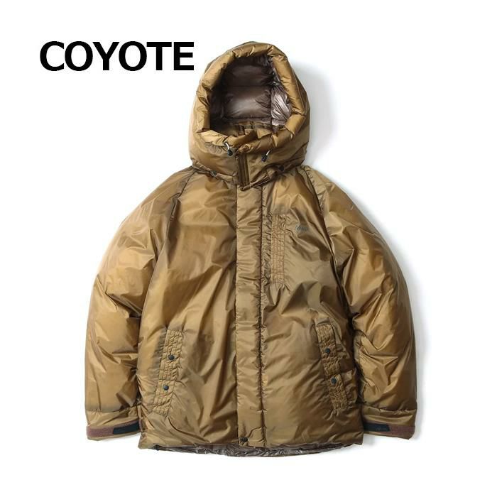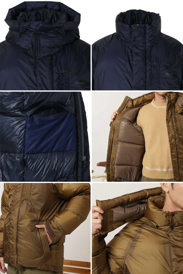 スリーピングバッグで好評の防水透湿かつ軽量生地であるNANGAオリジナルの'オーロラライト'をメインファブリックに採用したオーロラライト ユーティリティ ダウンジャケット。