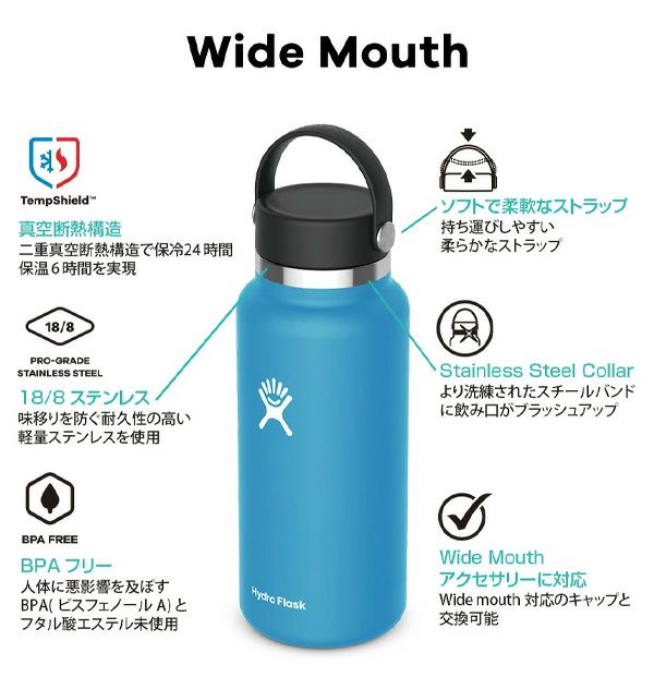 ハワイで爆発的な人気となっているHydro Flask(ハイドロフラスク)の持ち歩きやすい小ぶりな12ozボトル。