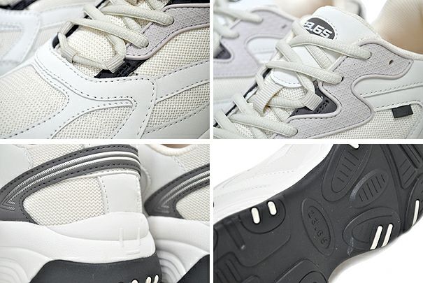 ハイブランドスニーカーを彷彿させるボリューミーなソールデザインや異素材のパーツを重ね合わせたアッパーデザインに仕上げられ、心地の良いふんわりとしたクッション感を生み出すソール&インソールが快適な履き心地を具現化。