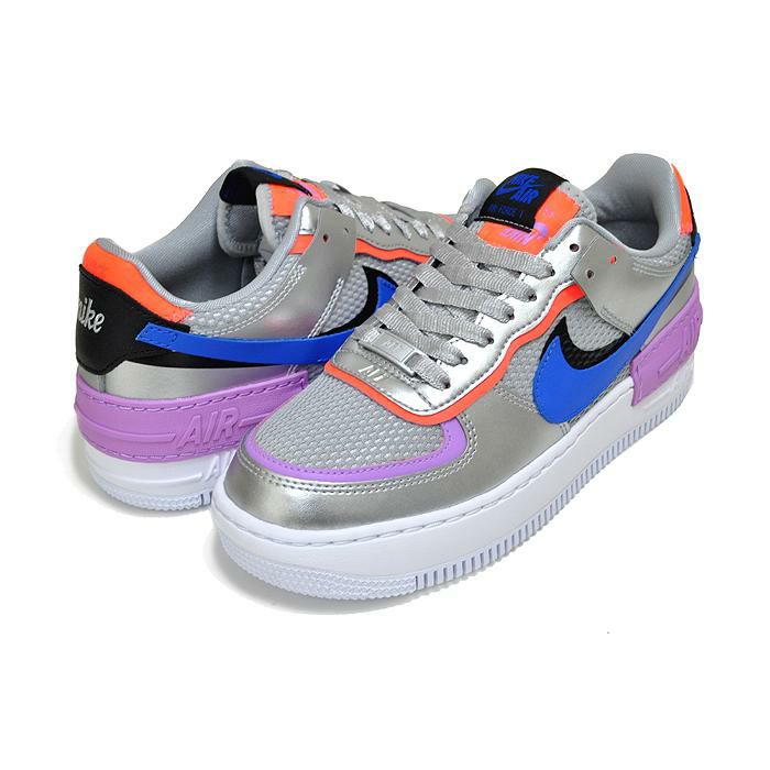 ナイキ ウィメンズ エアフォース 1 シャドウ NIKE WMNS AF1 SHADOW metallic silver/racer blue cw6030-001 スニーカー レディース AIR FORCE 1 ガールズ シルバー パープル ブルー