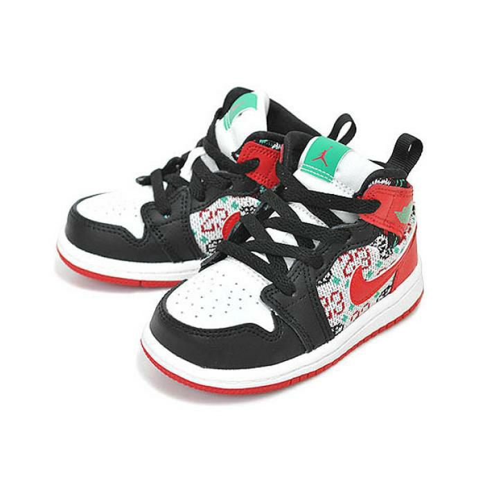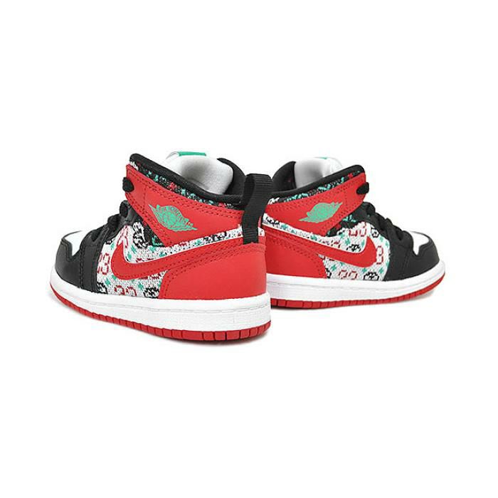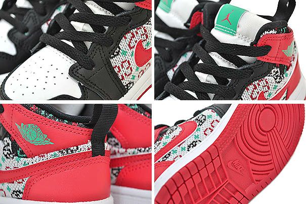 AIRJORDAN 1 MIDのディテールをキッズシューズへと落とし込み、その名の通りクリスマスの独特なセーターデザインを彷彿させるファブリックを採用したスペシャルエディション。
