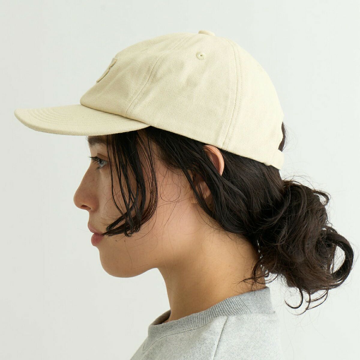 素材には、風合い豊かなコットンキャンバス(綿100%)を使用。アウトドアからタウンユースまで、幅広いシーンに馴染む万能なキャップです。やや深めのクラウン設計で、しっかりと頭にフィット。内側には柔らかめの芯を入れ、ふんわりとした被り心地を実現しています。