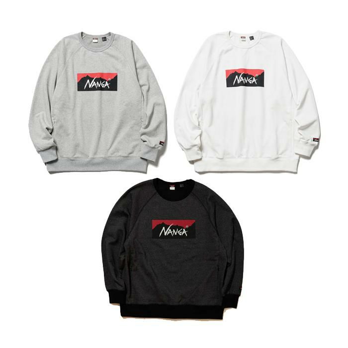 ナンガのBOXロゴをプリントした定番スウェットシャツ。
