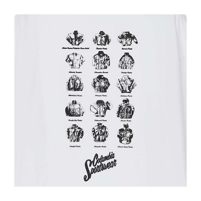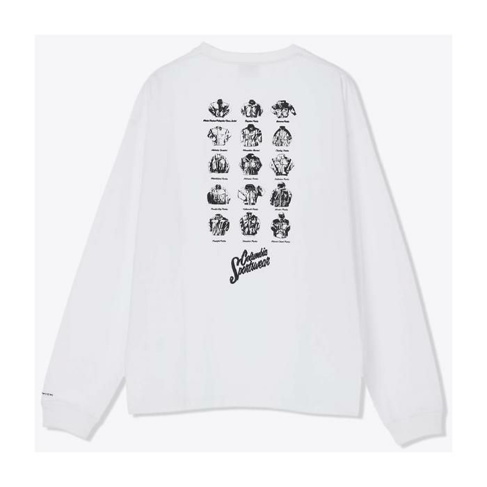 コロンビアのアーカイブをモチーフにしたグラフィックをプリントした長袖Tシャツ。